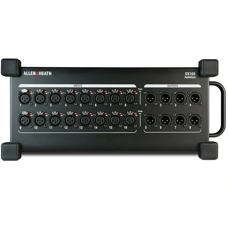 The Allen & Heath DX168 Portable DX I/O Stagebox Expander is a robust and versatile audio solution, perfect for expanding the I/O capabilities of your dLive or SQ digital mixing system. This stagebox features 16 high-quality mic preamps and 8 XLR line outputs, all housed in a rugged, portable enclosure. It connects to your mixer via a single Cat5e cable, offering both convenience and reliability for live sound, studio, or broadcast applications. With its compact design and powerful performance, the DX168 is an essential tool for engineers who demand flexibility and pristine audio quality.