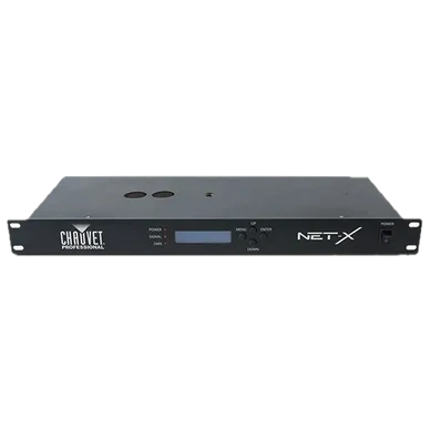 The Chauvet NetX (Ver 1.0) is an 8-port, 8-universe Art-Net and sACN node, designed for professional lighting control. This robust device allows for seamless conversion of Art-Net and sACN data to DMX512, providing reliable and precise control over your lighting fixtures. With its 8 independent ports, each capable of outputting a full DMX universe, the NetX (Ver 1.0) offers immense flexibility for complex lighting setups. Its intuitive web interface allows for easy configuration and monitoring, making it a powerful and user-friendly solution for a wide range of applications, from theatrical productions to architectural installations.
