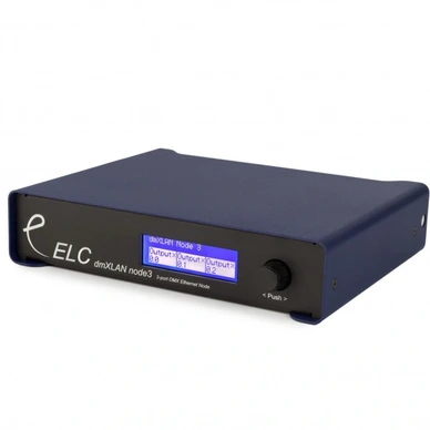 The ELC dmXLAN Node3 POE is a professional-grade DMX to Ethernet node designed for seamless integration into lighting control systems. With Power over Ethernet (PoE) capability, it simplifies installation by delivering both data and power over a single Ethernet cable, reducing clutter and setup time. This robust device offers reliable conversion of DMX512 signals to Art-Net or sACN protocols, allowing for flexible and expandable lighting networks. Ideal for theatrical productions, architectural lighting, and live events, the ELC dmXLAN Node3 POE ensures precise control and efficient management of complex lighting setups.