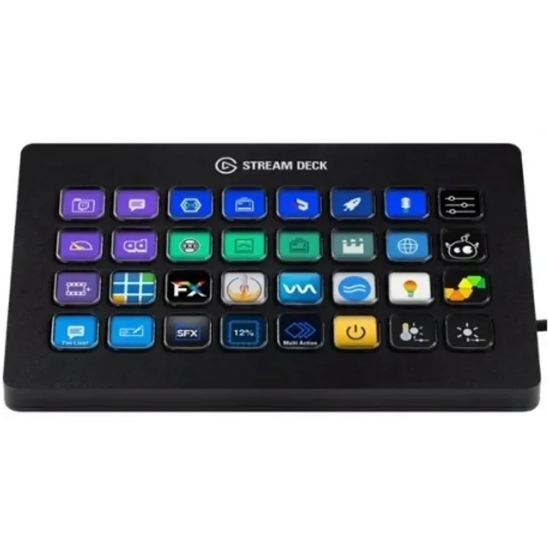 Elevate your content creation to new heights with the Elgato Stream Deck XL, the ultimate command center for streamers, video editors, and creative professionals. Designed for serious workflows, this powerhouse device features 32 customizable LCD keys, each delivering crisp, vibrant visuals for instant feedback. Program unlimited actions, from launching apps and switching scenes to adjusting audio and triggering sound bites, all with a single tap. The Stream Deck XL seamlessly integrates with your favorite software and services, including OBS Studio, Twitch, YouTube, Spotify, and more, streamlining your production process and freeing you to focus on engaging your audience. Its robust, non-slip magnetic stand ensures stability during intense sessions, while the intuitive Stream Deck software makes setup and personalization a breeze. Unlock unparalleled efficiency and unleash your creative potential with the Elgato Stream Deck XL, the definitive tool for taking your content to the next level.