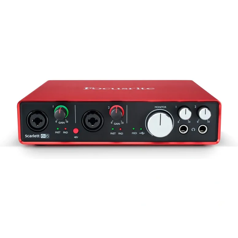 The Focusrite Scarlett 8i6 3rd Gen is a powerful and versatile audio interface, perfect for home studios and professional setups alike. This 8-input, 6-output interface offers pristine sound quality with its third-generation preamps, ensuring your recordings are clear and detailed. It features two upgraded Scarlett mic preamps with switchable Air mode for an open, brighter sound, 6 line inputs for connecting synths, drum machines, and other line-level sources, and 4 balanced outputs for connecting to monitors and outboard gear. With its high-performance 24-bit/192kHz AD-DA converters, you can record and mix with exceptional clarity. The Scarlett 8i6 3rd Gen also boasts super-low latency, allowing you to monitor with native plug-in effects in real-time. It’s bus-powered via USB, making it portable and easy to set up anywhere. This interface comes bundled with a comprehensive software package, including Ableton Live Lite, Pro Tools First Focusrite Creative Pack, Focusrite Red Plug-in Suite, and more, providing everything you need to start recording and producing right out of the box.